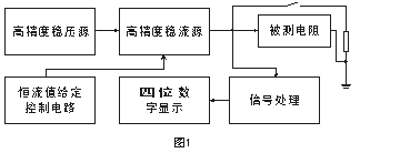 其中穩(wěn)壓源是高精度低紋波電源,可提供10A的電流輸出。穩(wěn)流源輸出的電流受其分擋切換控制電路的控制。當(dāng)測量選擇不同擋位時,輸出不同的穩(wěn)定電流。當(dāng)恒流電流通過被測電阻時在被測電阻上產(chǎn)生穩(wěn)定的電壓信號,該信號經(jīng)計算機(jī)處理后由液晶顯示器直接顯示電阻值。