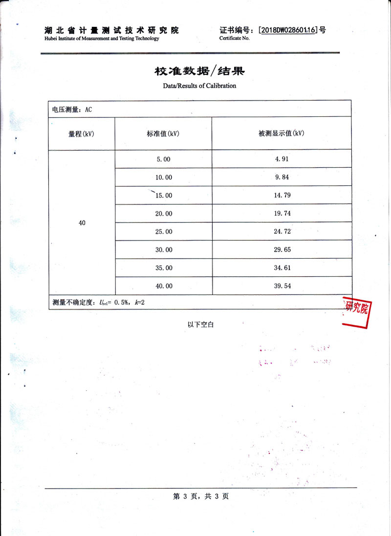 | 測(cè)量電壓范圍 | 0 - 40kV(特殊電壓可定制) |