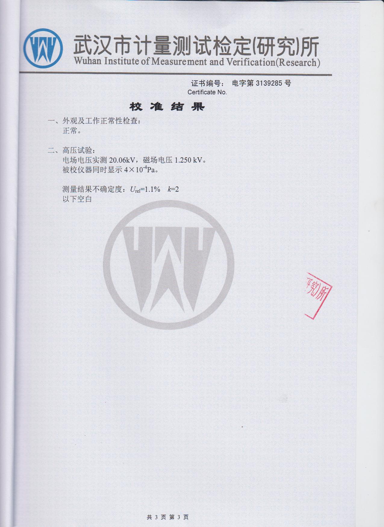 - 可定量測量各種型號真空開關滅弧室內的真空度